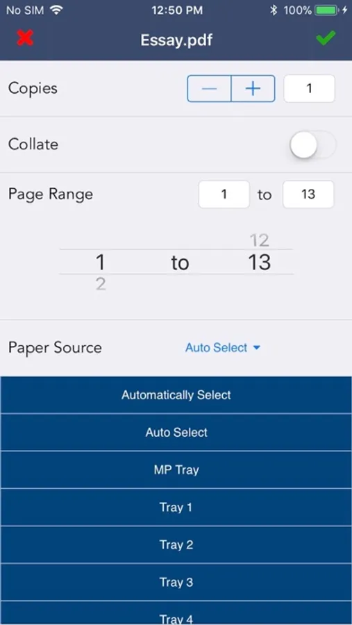 3. Tap to select the print job to print and then tap “Print” on your iPhone or iPad.