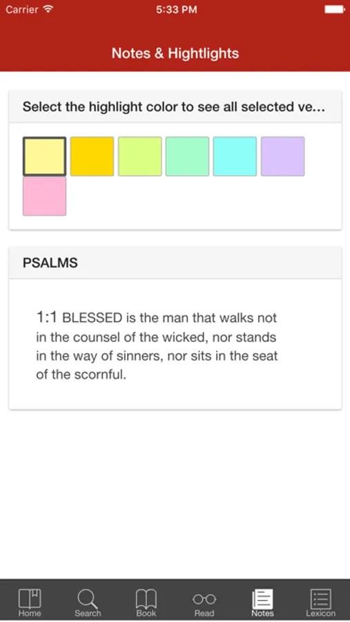 In this Bible app, you can search scriptures by keyword, book, chapter, or verse and add notes or highlights. Includes a lexicon, daily prayers, and links to additional resources.