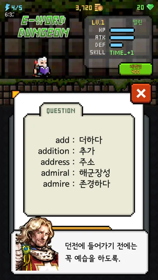 용사와 함께 게임을 하면서 영단어를 익히세요!