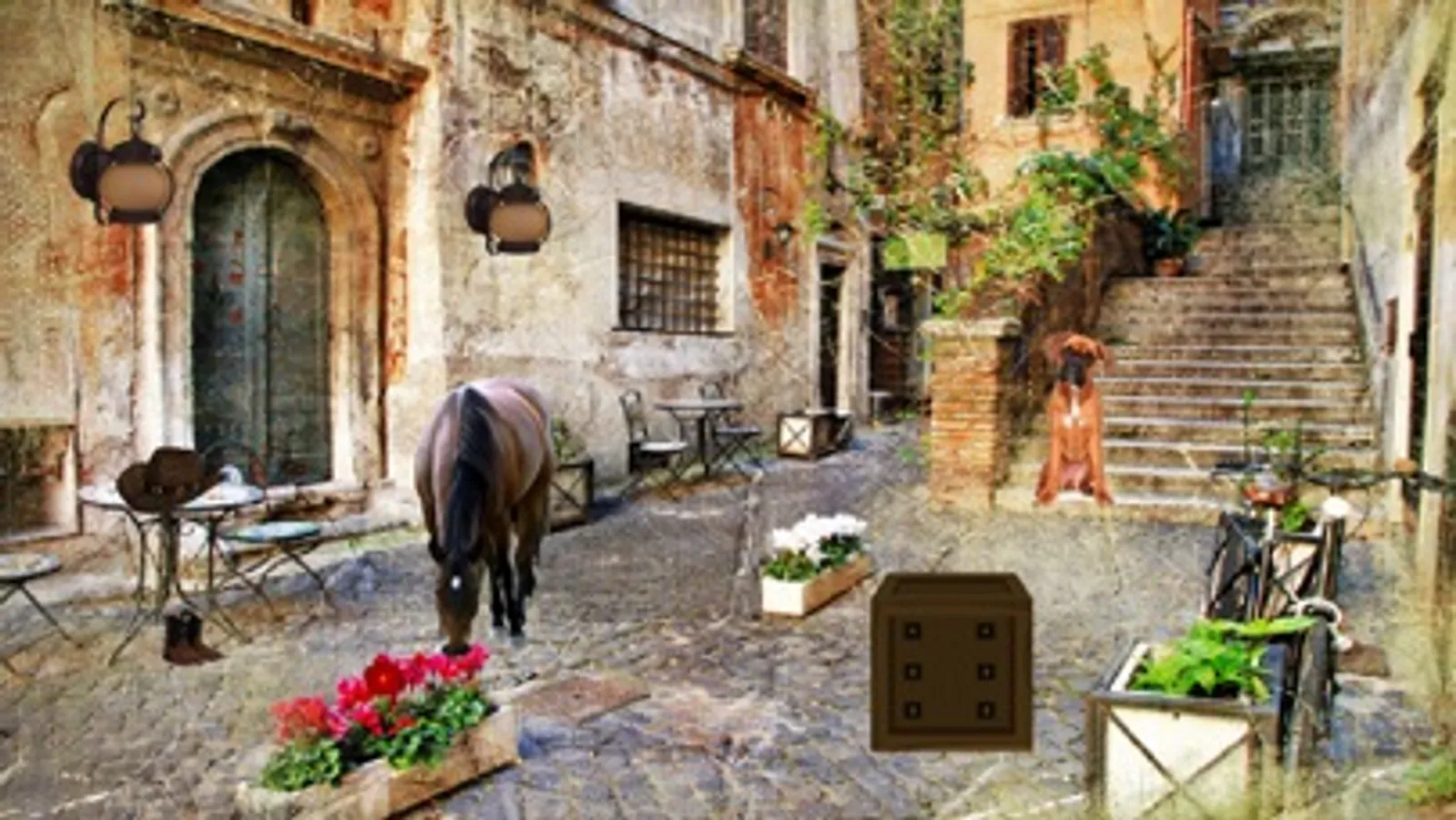 Assume that someone has cast a spell on you and you got lost in this pictorial Greek street. If you want to go to the real world, you need to escape from this pictorial street. For that you need to solve various puzzles and find the key to open the gate of the street. Avail the things you get for solving the puzzles and escape from the street. All the best and have fun!
