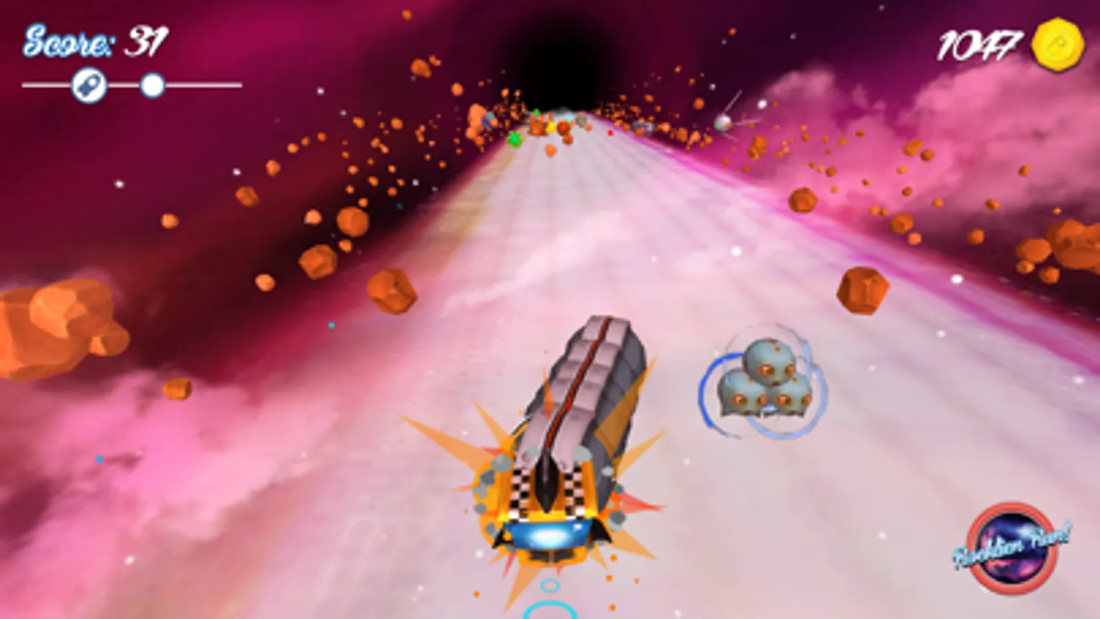 Take your favourite space ship on a run through the nebula's rainbow fields!