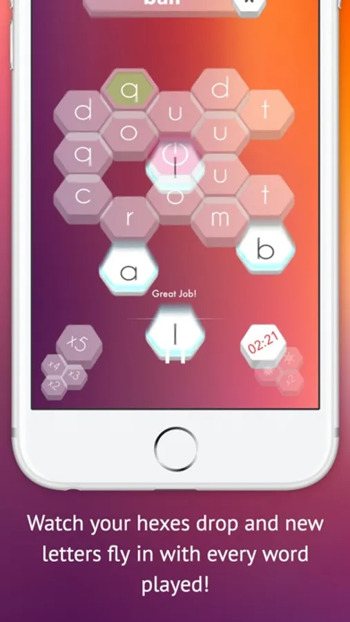 Construct words out of ‘Hexes’ and collect them to earn points and build your multiplier. Collect special Hexes to unlock awesome power-ups.
