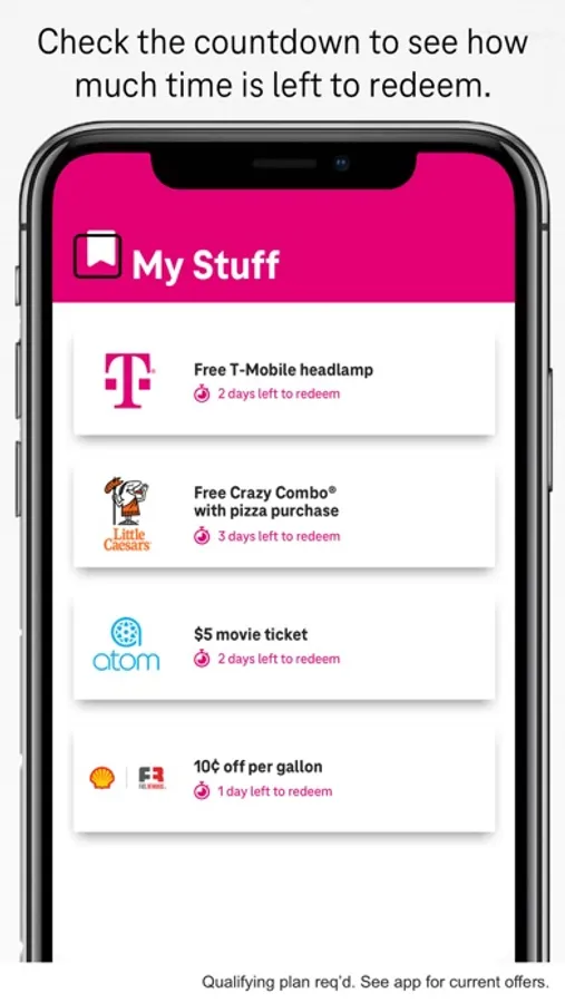 While some of the most popular offers return week after week, there's always something new to try. It’s all just our way of saying thank you for being a customer. To be eligible, you must be on a qualifying T-Mobile, Metro by T-Mobile or T-Mobile Home Internet rate plan.