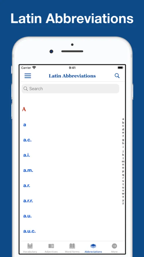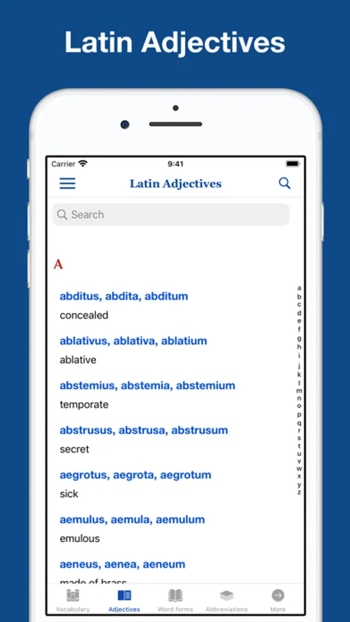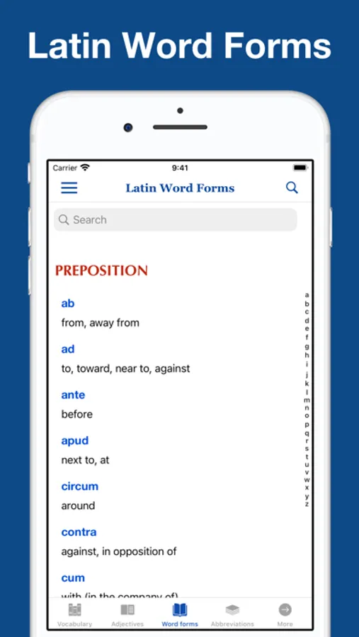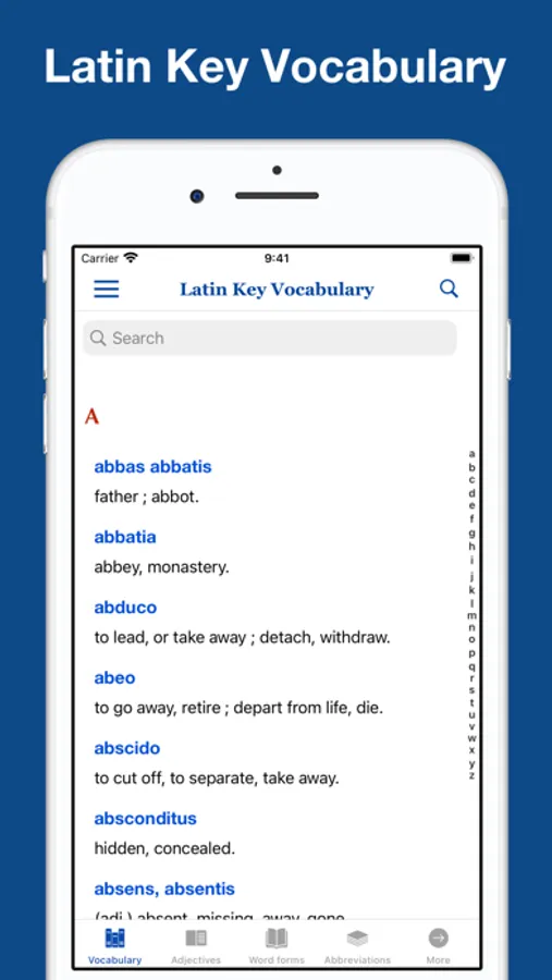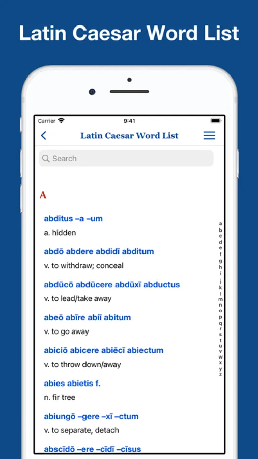 This app provides the digital tools and study material to help you study a collection of Latin word lists.