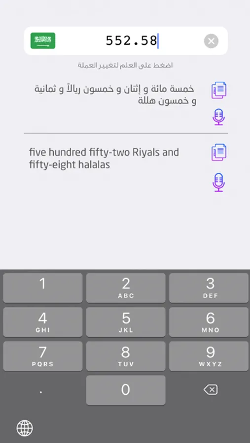 كما يدعم مسميات معظم العملات العربية