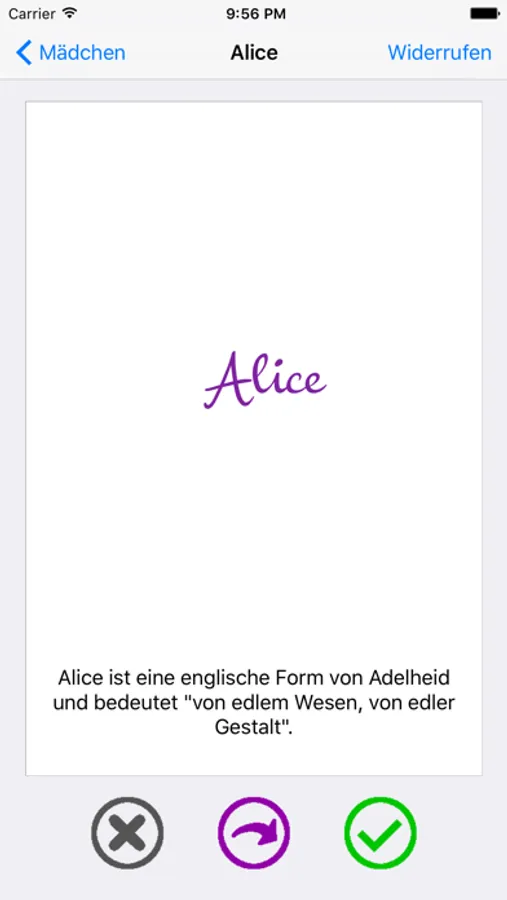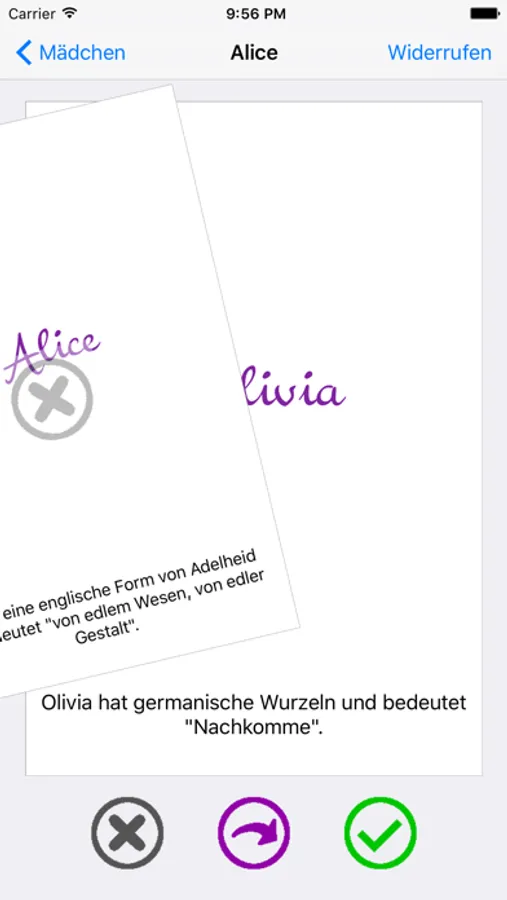 Die von dir aussortierten Namen werden nicht noch mal vorgeschlagen, sodass du ganz in Ruhe alle durchsehen und am Ende sicher sein kannst, keine Perle übersehen zu haben.