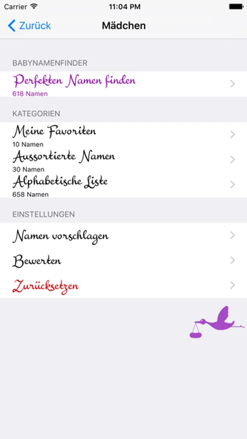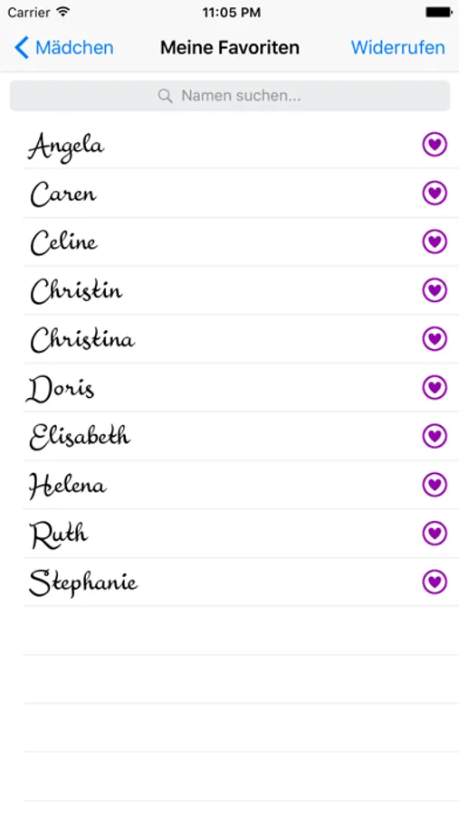 Wir haben außerdem alle Namen handverlesen und dafür gesorgt, dass wirklich nur Namen in der Liste auftauchen, die im deutschen Sprachraum möglich sind - so kannst du dich darauf konzentrieren, den