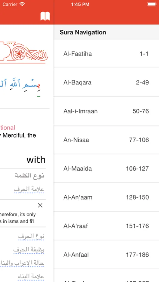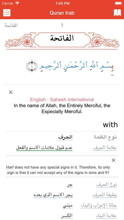 For the first time in 1500 years, the details of Quranic grammarand morphology is available literally at your finger tips. Study Nahw and Saraf of each words in the Quran without having to go through tens of books in the library.