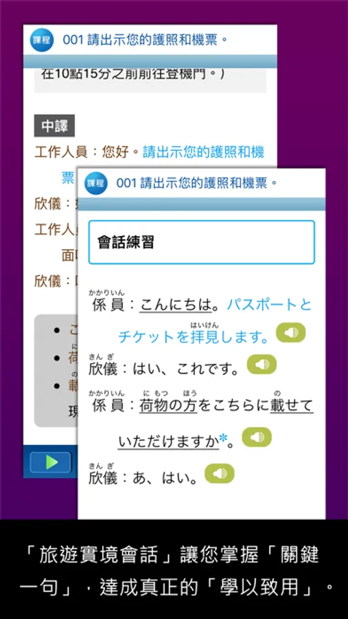 ● 會話可「逐句點選」播放,張大耳朵聽,訓練聽力語感。