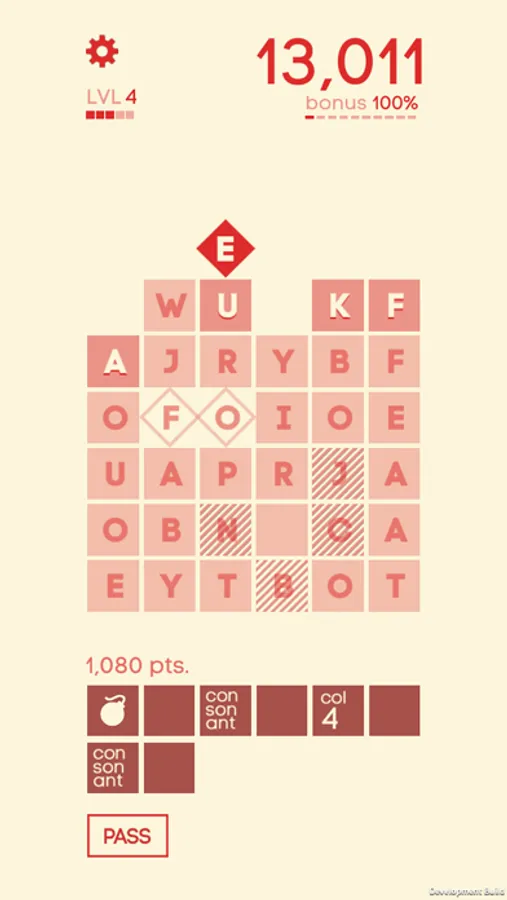 Move letters from the top of the stacks to fill the slots below. Be careful - any combination of 4 or more letters that can be arranged to form a word will bust you and add more letters to the grid. When the grid goes off the top of the screen you lose.