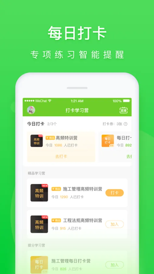 章节知识点练习题、教材强化练习题、历年真题、精研模拟卷、每日打卡题、模考大赛卷等不同类型题库,满足个性化刷题;大数据智能组卷,刷为你量身定制的题;做题/背题模式任意切换,做题记录、错题集、助你刷题学习。