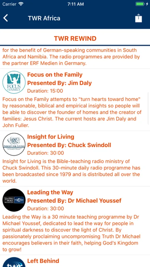 Listen to TWR Africa Live. View times of scheduled programs so you don't miss your favorites.