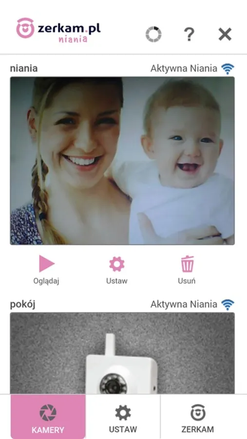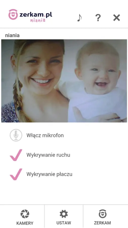 Dzięki aplikacji Niania Zerkam, twój telefon może spełniać rolę odbiornika wideo niani Zerkam. Możesz na niej oglądać obraz z wideo niani, mówić do dziecka, czy otrzymywać powiadomienia alarmowe, gdy niania wykryje ruch, dźwięk lub płacz.