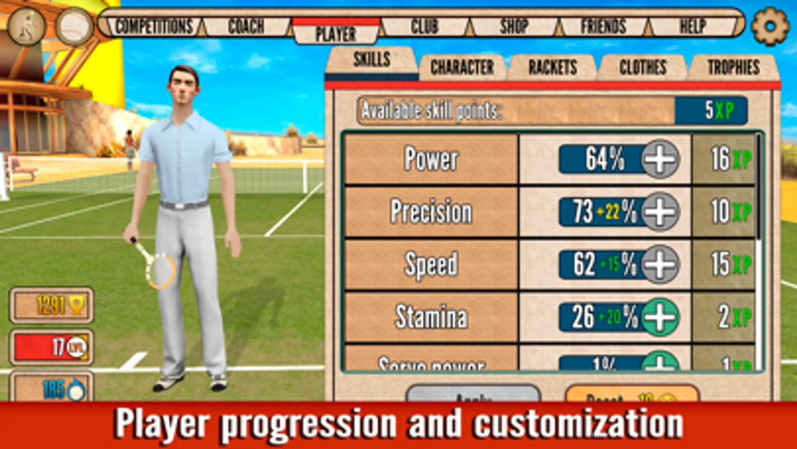• Customize and develop your in-game character into an ultimate tennis pro.