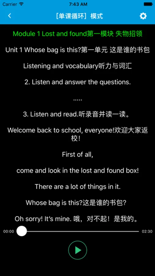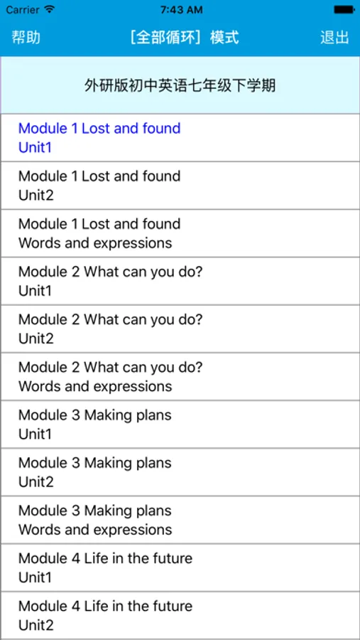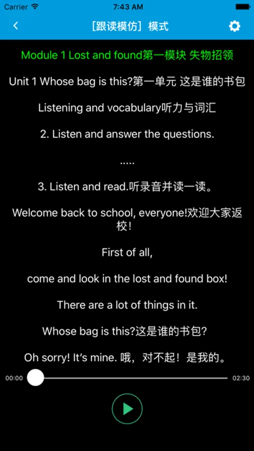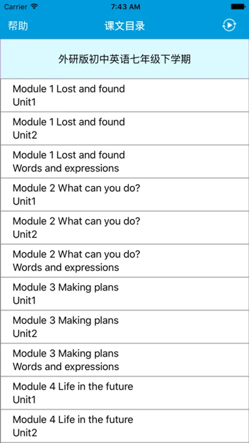 本应用对应外研版初中英语七年级下学期课本,具有跟读模仿,自动听写,变速播放的复读机功能。