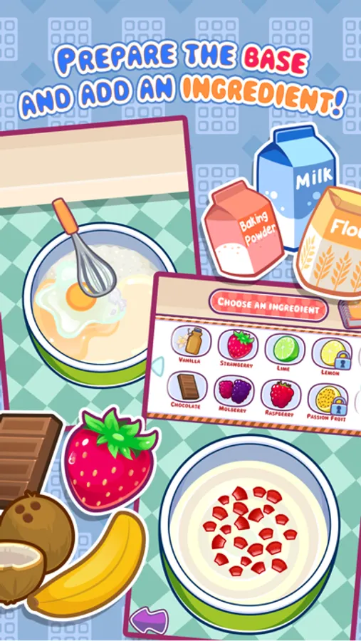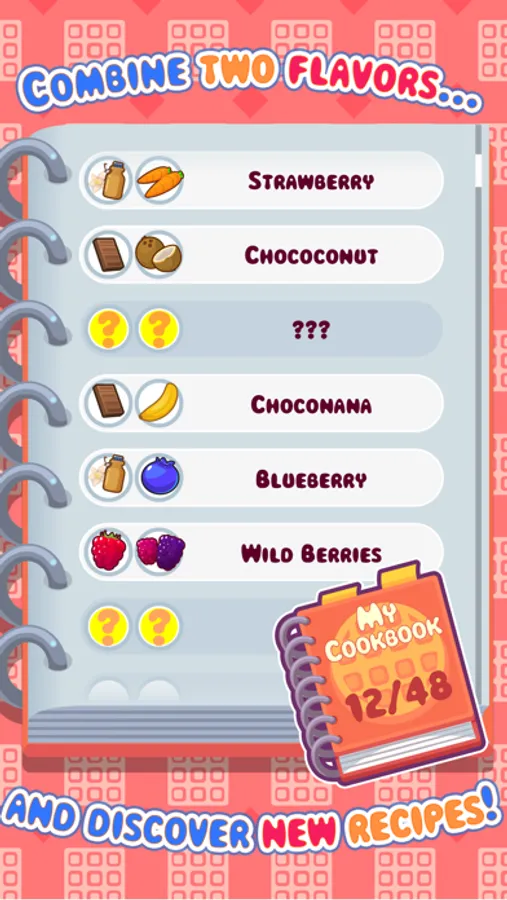 Mix flavors and create unique waffles! Go CHOCONANAS mixing and matching! Combine two flavors and discover new recipes to add to your recipe book – you have to keep guessing and trying out new things so you can get them right and complete your book of delights!