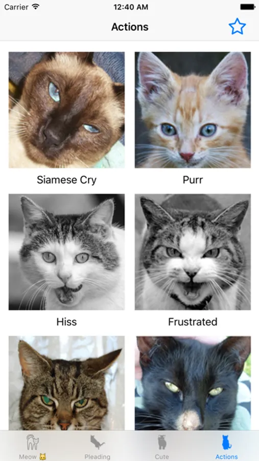 Get collection of different type of angry, kitten, fighting, frustrated, hiss, pleading, begging, hungry and other action cat meow sounds.