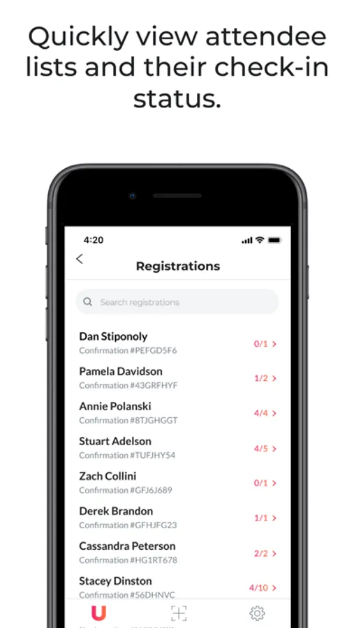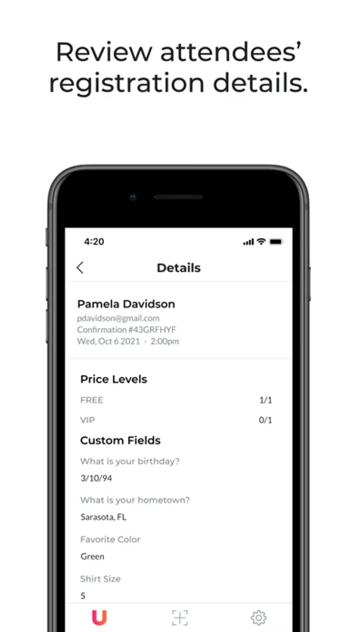 • Track Registrations: Easily view your attendee list at a glance or review their registration details in depth.