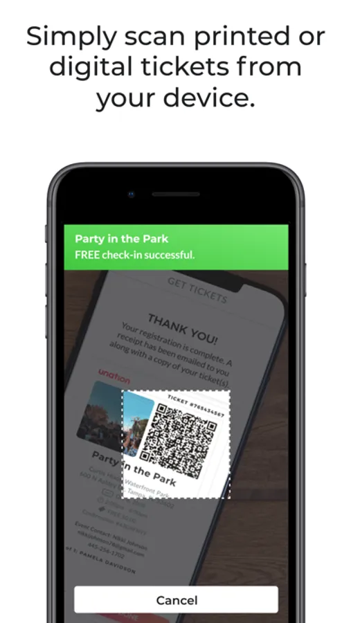 • Scan Tickets: Simply scan printed or digital tickets using your phone’s camera. Using UNATION’s Check-In App, you can protect your event against duplicate or fraudulent tickets.