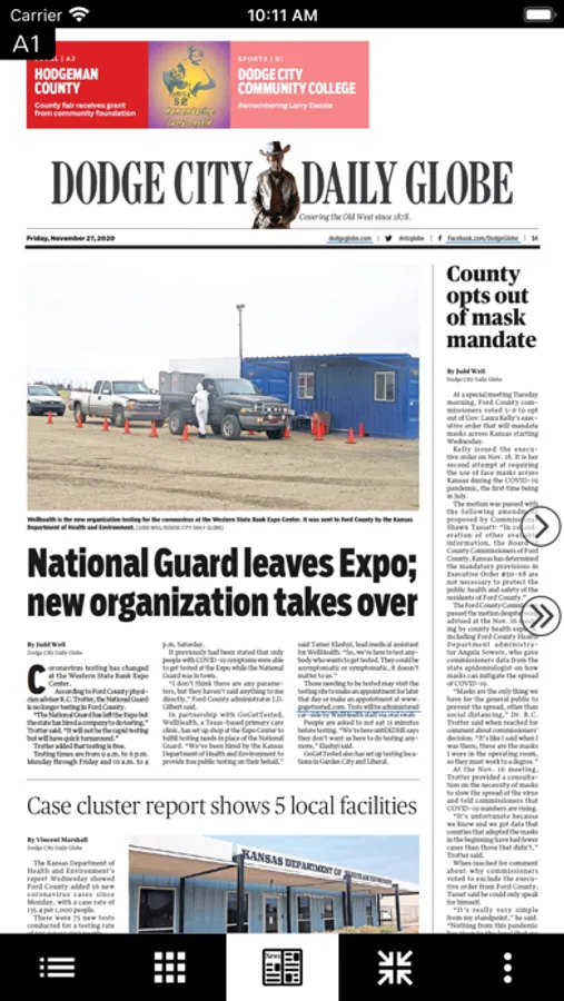 The Dodge City Daily Globe eEdition is an exact digital replica of the printed newspaper. Readers of the paper can flip through the pages, read stories, photos, and view ads just they appeared in print.