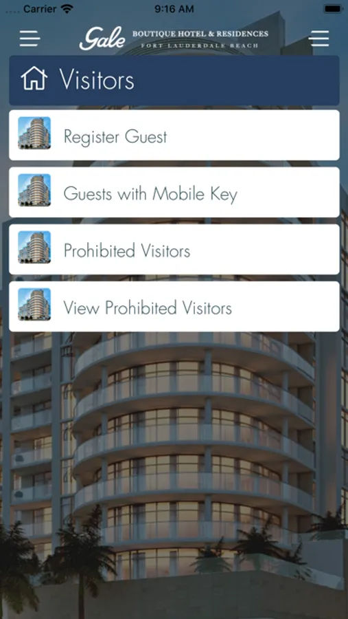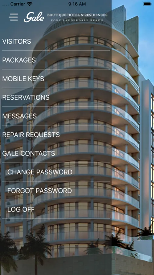 Gale Condominium is your private gate, and now Entry Key with new eKeys feature, to your very own residence wherever you might be. Access your Facilities Reservations, Concierge, Front Desk and Repair Requests, control Visitors Access, view and accept Deliveries, keep in touch thru our Internal Messaging System, all thru your iPhone or iPad, no matter where you are. Since Gale uses GPS Localization running on the background in order to improve the accuracy of our eKeys and Beacons feature, the continued use of GPS running in the background can dramatically decrease battery life.