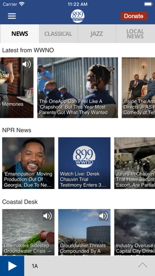 • Listen to live streams from WWNO even while traveling! Start the app and your favorite station starts playing.