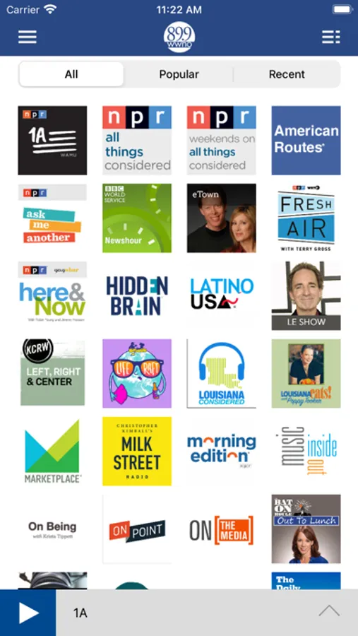 • When listening to programs, individual segments (when available) are listed so you can review and choose one or listen to the entire program.