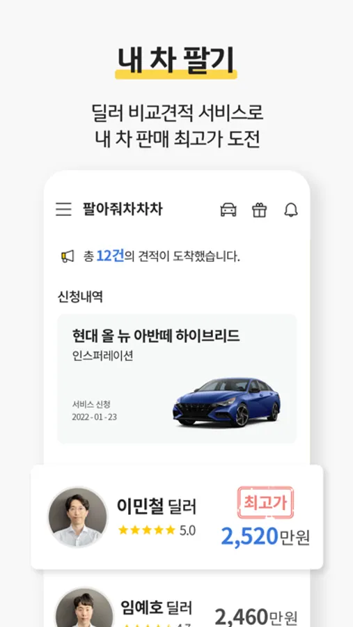 ▶경쟁입찰을 통한 최고가 중고차 판매, 팔아줘차차차!