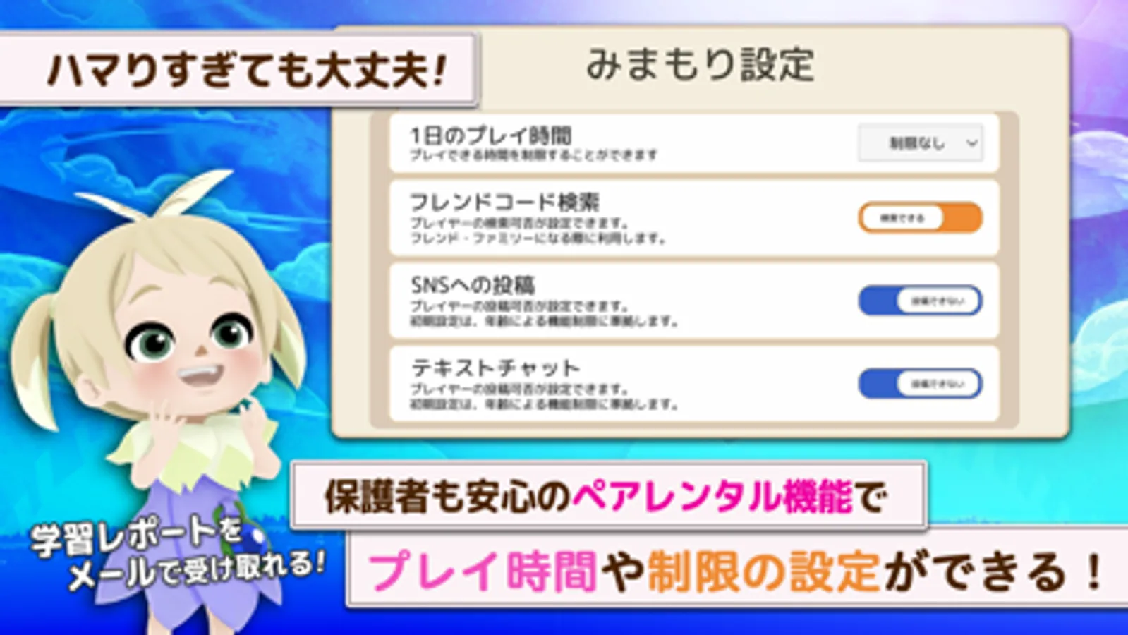 保護者の方が安心してお子様を遊ばせて頂くため【みまもり設定】があります。