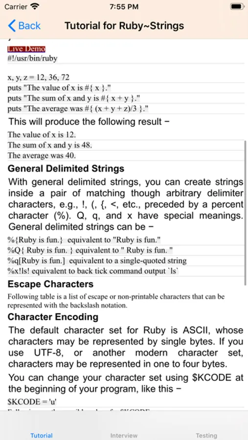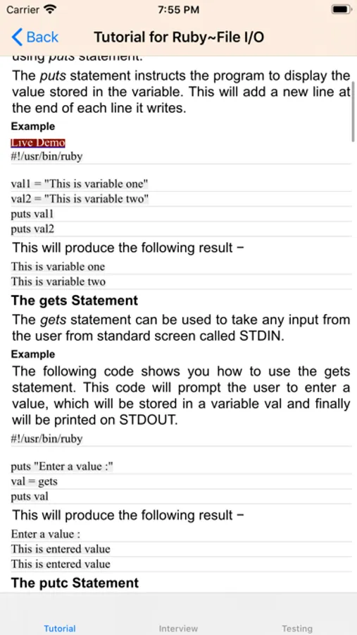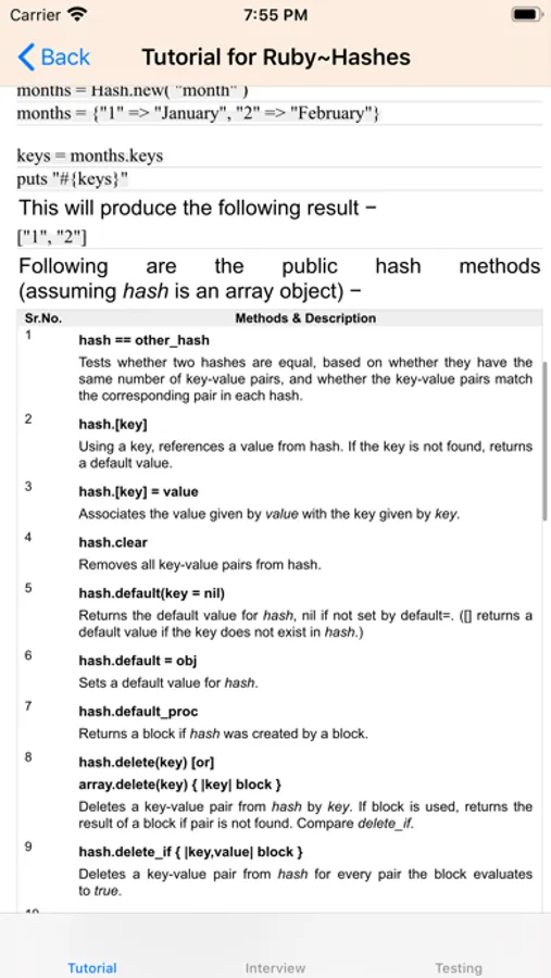 The app provide the Tutorial of Ruby.