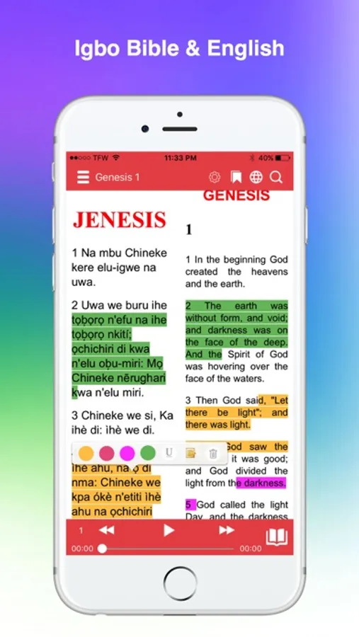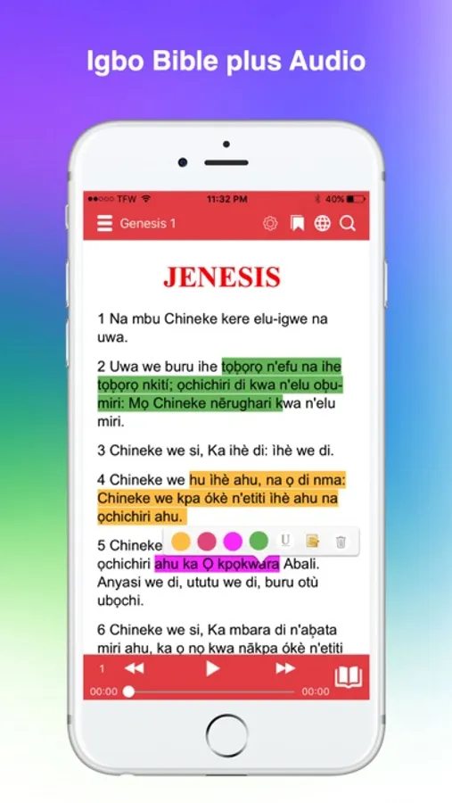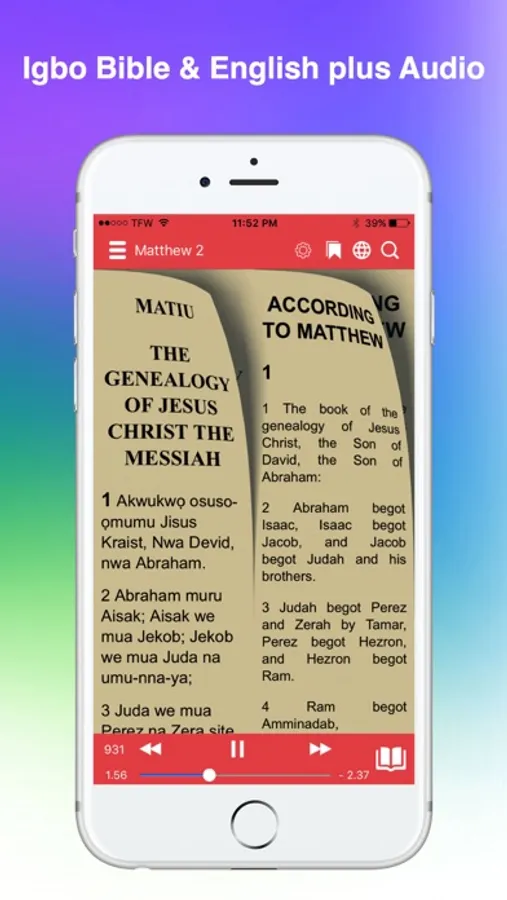 The FASTEST Igbo Bible app and most efficient way to read & study the Bible. Quickly navigate to any verse and easily access tools to help further your understanding of the Bible.