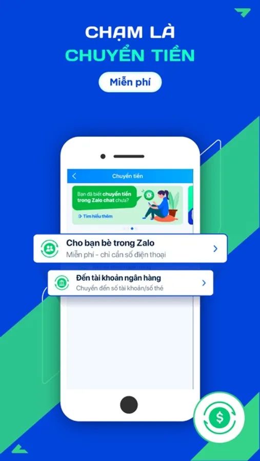 ZaloPay giúp bạn thanh toán các tiện ích hằng ngày chỉ trong 2s. Đặc biệt, bạn có thể chuyển tiền dễ dàng, nhanh chóng và an toàn tuyệt đối với 3 cách thuận tiện: chuyển tiền trong khung chat Zalo, chuyển tiền liên ngân hàng qua thẻ/tài khoản và chuyển tiền qua ví ZaloPay.