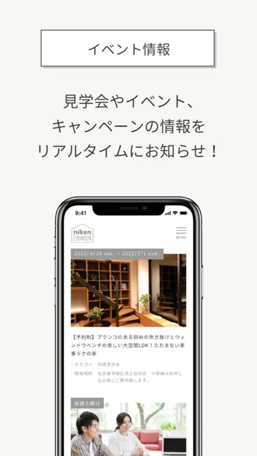 このアプリは、そんな私たち「ニケンハウジング」の家づくりを、これから家づくりをはじめるお客様によりわかりやすく伝えることができるようにと開発しました。