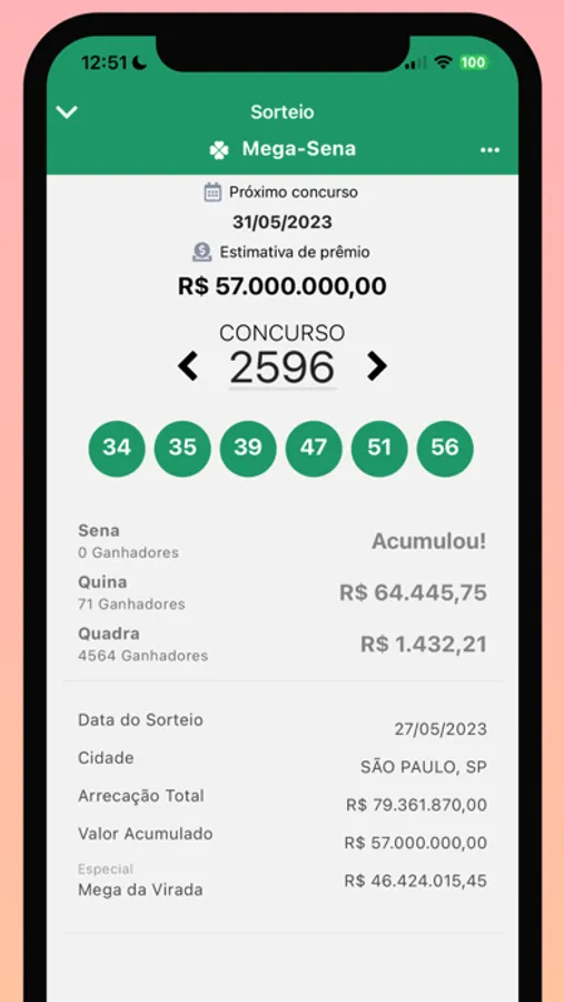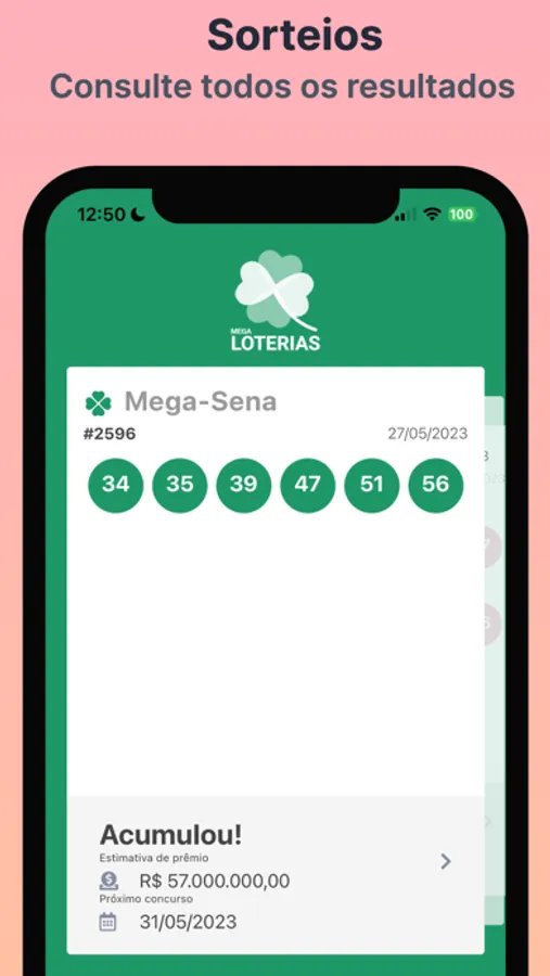 Tome nota que este app não realizar apostas, mas apenas consulta os números sorteados pela Caixa.
