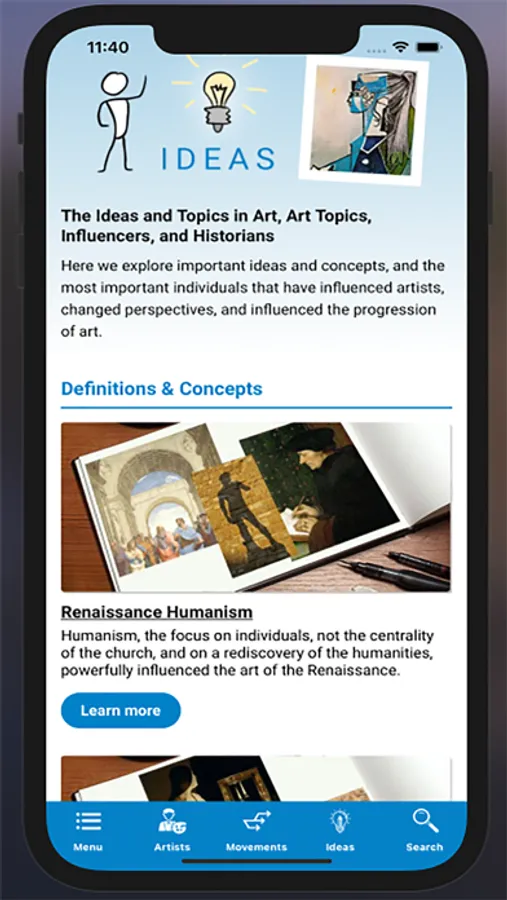 Whether you are interested in - an artist (Michelangelo, Pablo Picasso, or Kara Walker), an art movement or artistic direction (Impressionism, Performance, or The Baroque), or even an art concept (The Readymade, Renaissance Humanism, or Collage) - we have specialized pages covering your topic of interest.