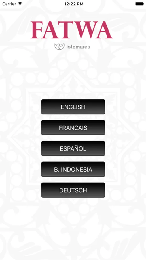 Islamweb buscando facilitar el acceso a las Fatwas publicadas pone a disposición de sus visitantes y usuarios esta aplicación en cinco idiomas: inglés, francés, alemán, indonesio y español.