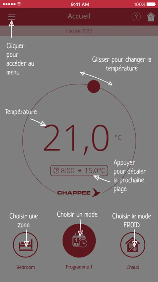 Application gratuite, ne fonctionnant qu’avec la sonde d’ambiance connectée Chappée.