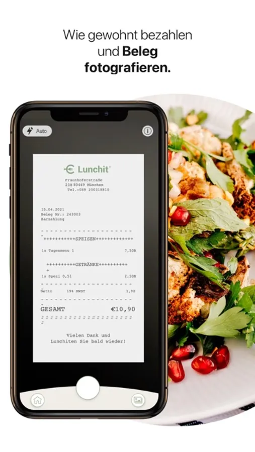• Wie gewohnt bezahlen und den Beleg mit der App fotografieren