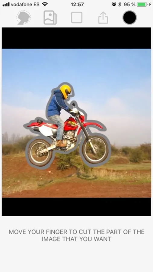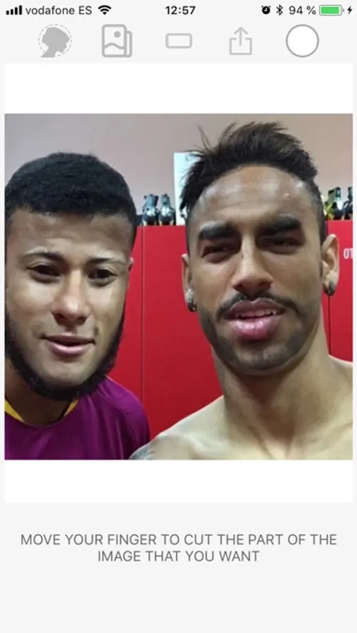 - Click The button silhouette head to select a photo from the gallery or take a picture with the camera, and then paint with the finger the portion of the photo you want to crop.