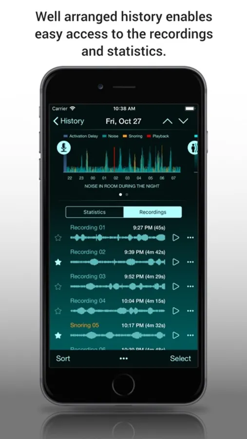 Tries to stop your snoring by playing chosen sound or using iPhone vibration when the snoring is detected.