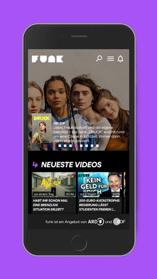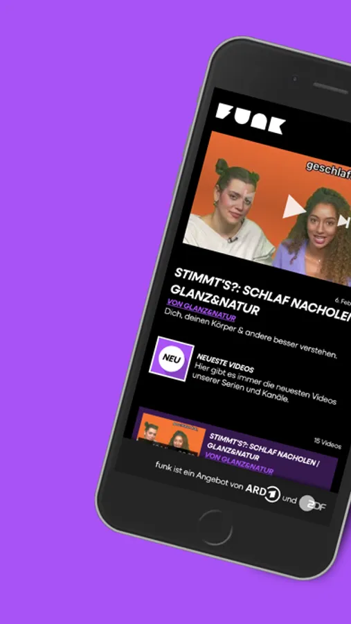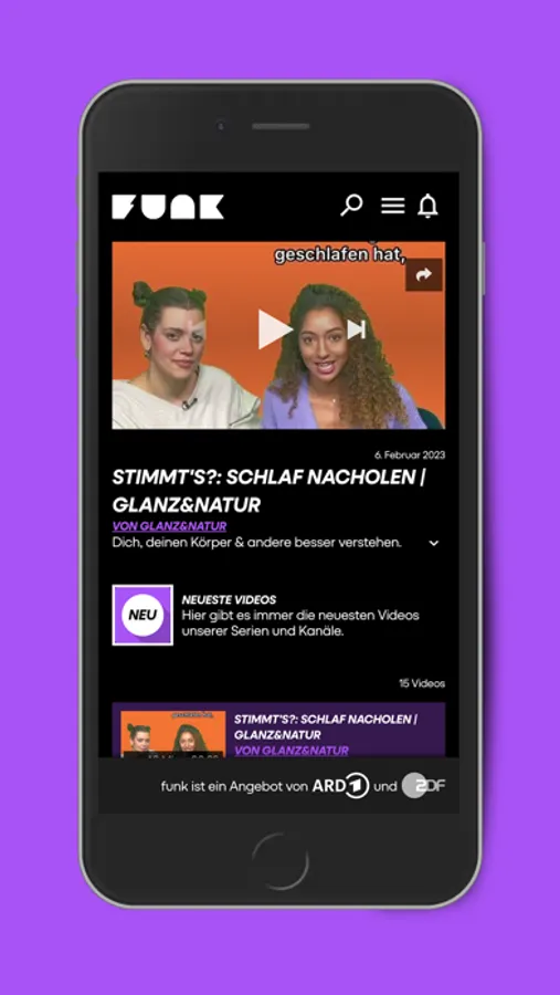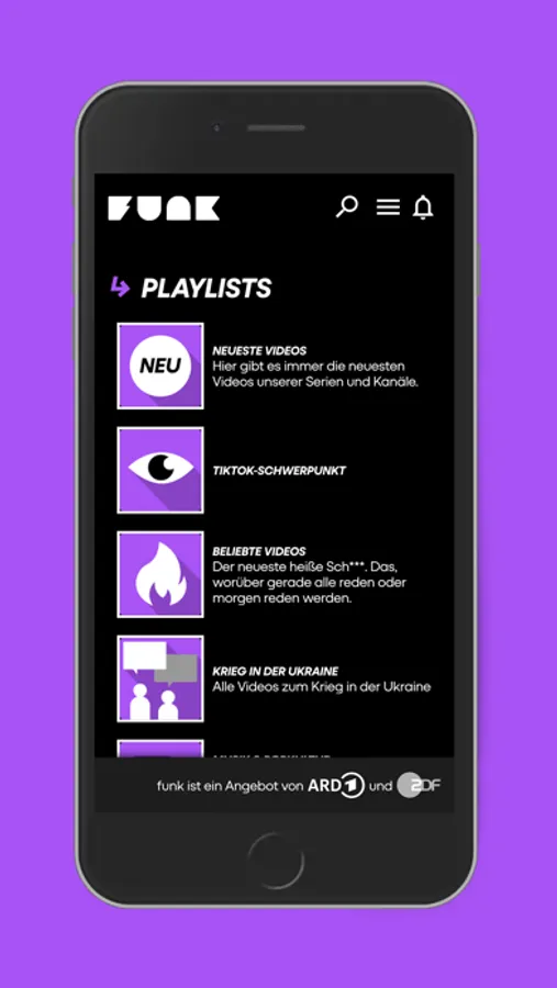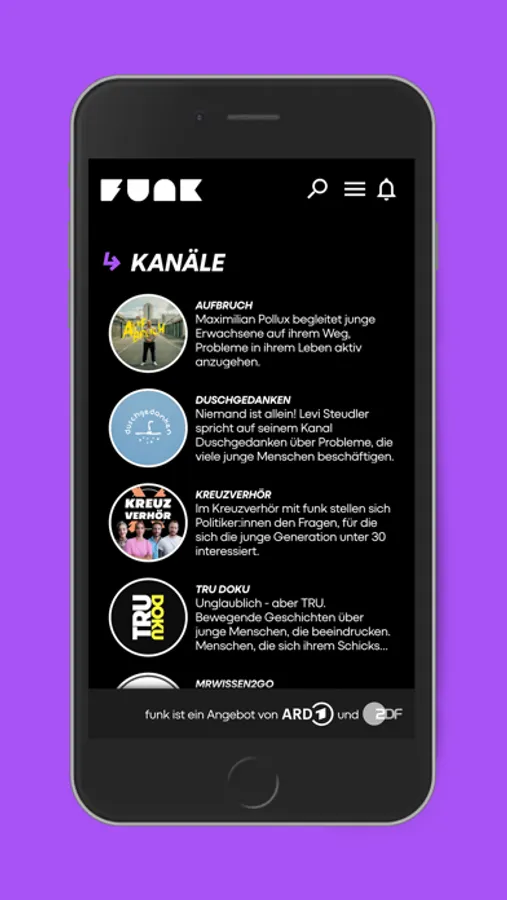 Für alle, die gerne Dokus, Serien, Vlogs und Shows sehen und das komplette funk-Netzwerk in einem Player entdecken wollen.