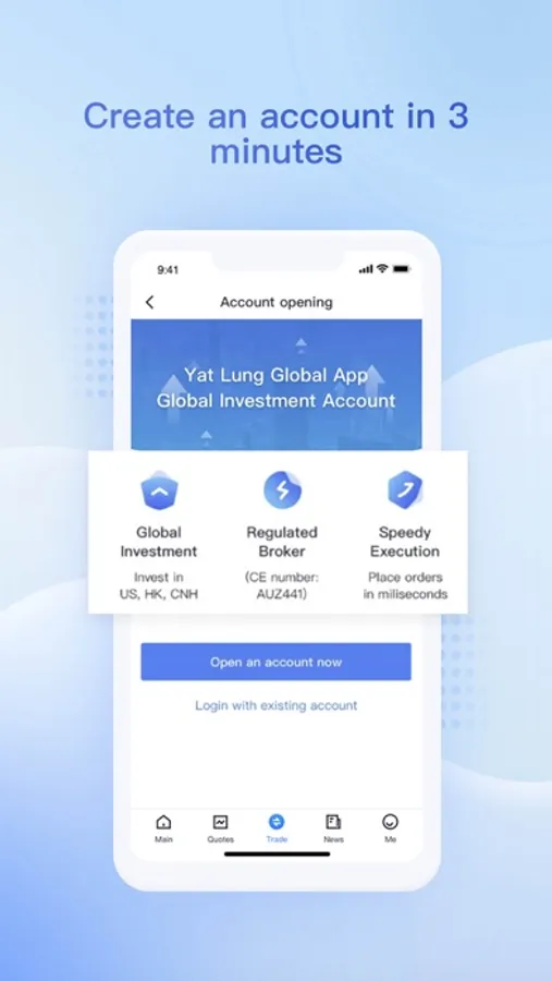 Yat Lung Global is a mobile trading application provided by China Merchants Bank International (CMBI). CMBI is a licensed corporation under SFC with PRC background. CMBI keeps client asset safe and reliable. In addition, Yat Lung Global relies on the financial cloud provided by China Merchants Bank to provide services to customers. Its security has passed rigorous tests.