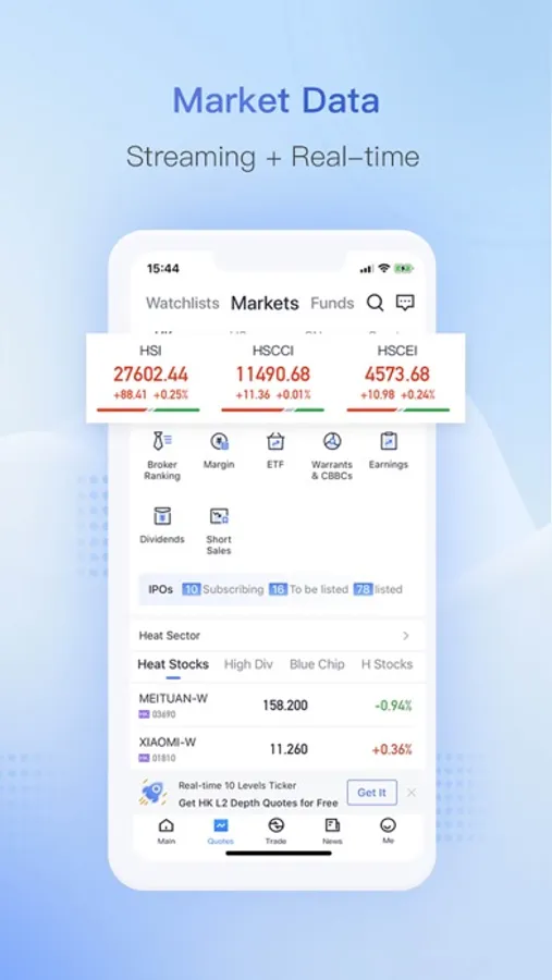 Clients can trade HK stock , China A stock, US stock and mutual fund via Yat Lung Global. This trading application also provides account opening, real-time market data, research reports and the information of roadshows.
