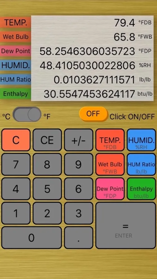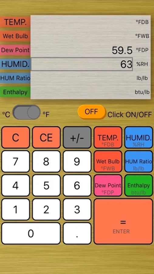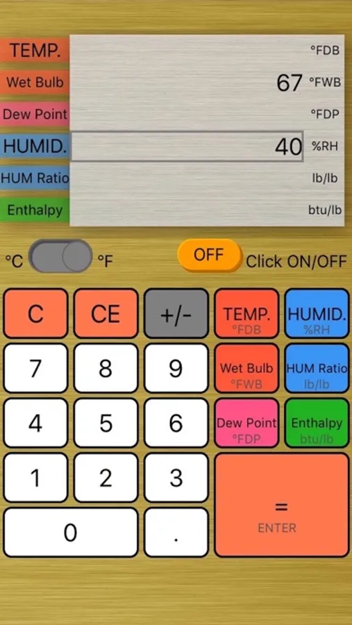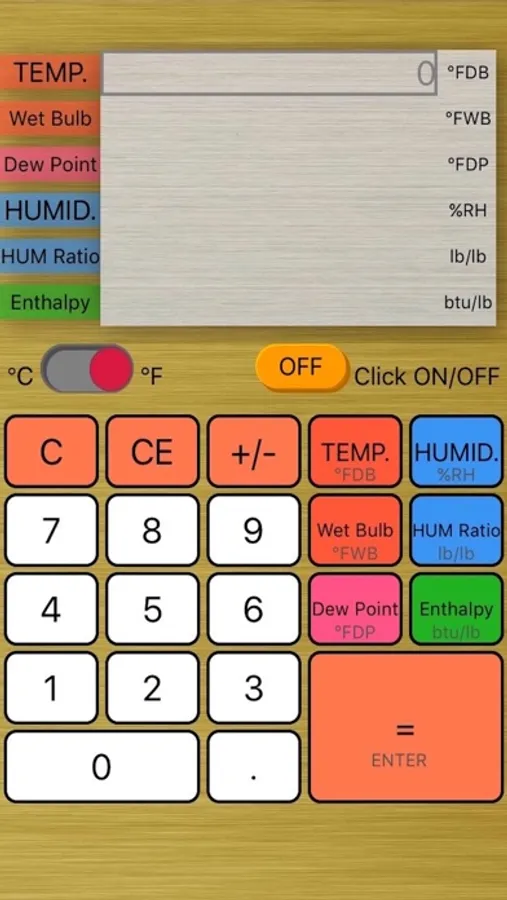 The app can be used in Celsius temperature (℃) or Fahrenheit temperature (° F) and Click-Sound also can be of choice turned ON / OFF.