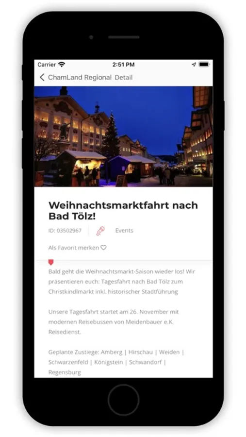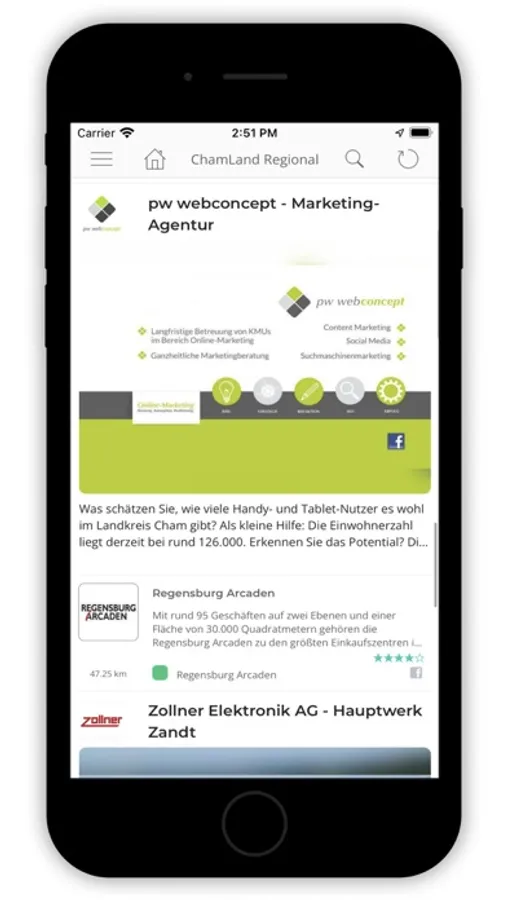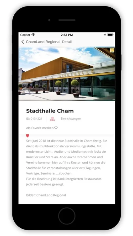 Die ChamLand Regional App ist eine ganze neue Art von Regio-App: umfassend, übersichtlich und jeden Tag neu. Das Konzept der Regional-Apps wurde von der Rid-Stiftung und UnternehmerTUM ausgezeichnet und darüber hinaus als Innovation preisgekrönt.