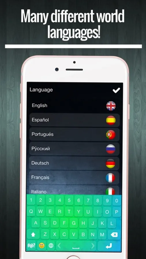 ▶ Select a language and get a English keyboard, German, Italian, Spanish, Russian, Portuguese or Turkish keyboard. Type love messages in the most romantic language in the world by choosing a French keyboard pro!