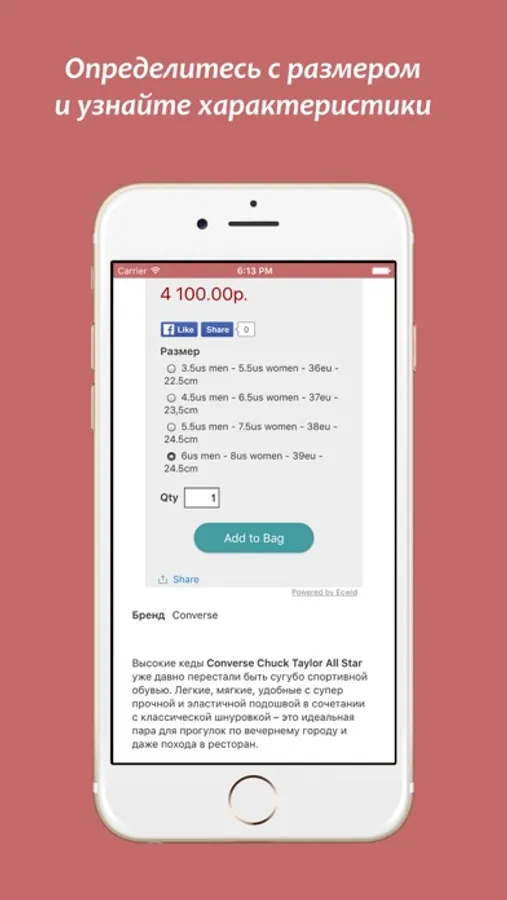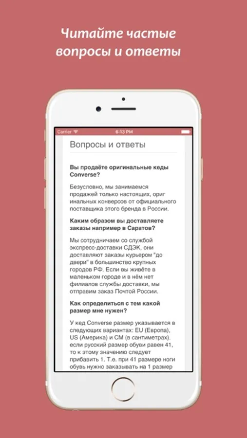 Приложение Кеды позволит тебе купить оригинальные кеды Converse с доставкой по России.