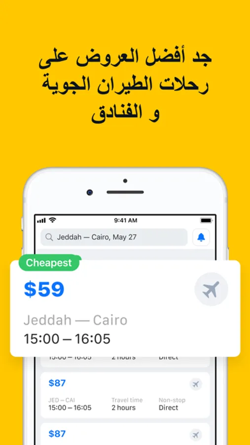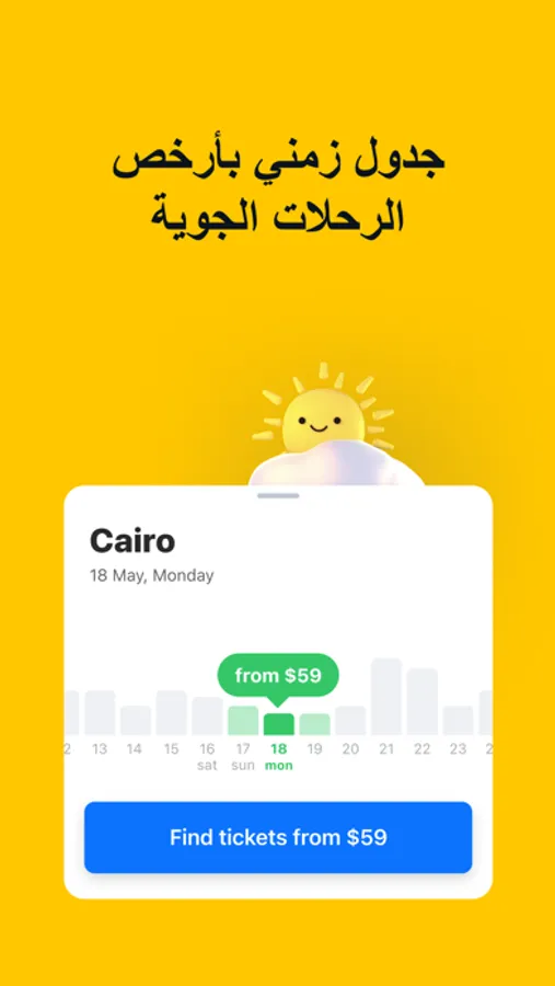 *ملاحظة: تطبيقنا يساعدك فى الحصول على رحلات طيران رخيصة من النقطة أ للنقطة ب. نحن لا نقوم ببيع تذاكر شركات طيران، نحن نبحث عن أفضل الإختيارات المتاحة لك ونرشدك إلى المواقع الإلكترونية لشركات الطيران ووكالات السفر لإتمام حجزك.