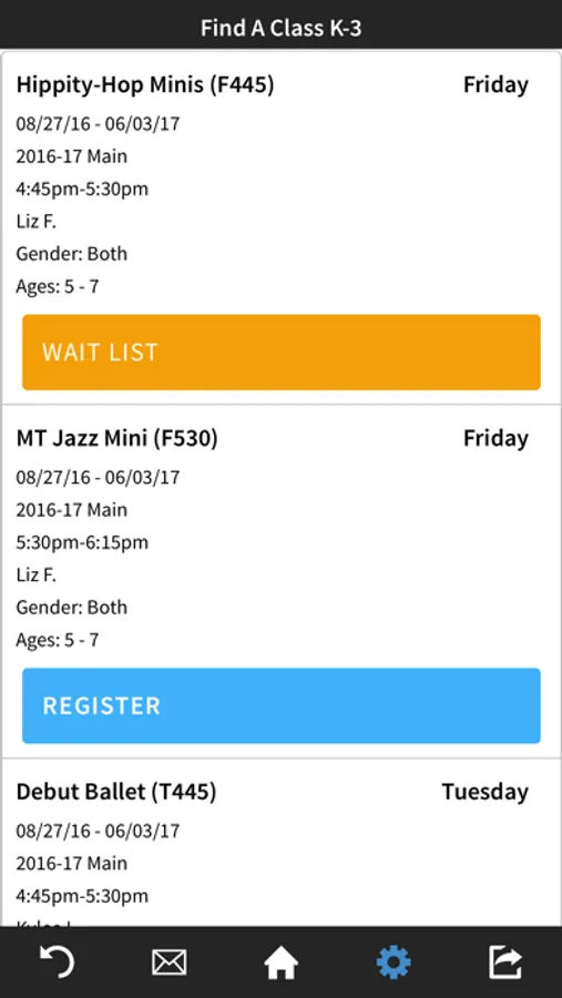 - Have a class in mind? Search by program, level, day, and time. You can register or even put yourself on a wait list.