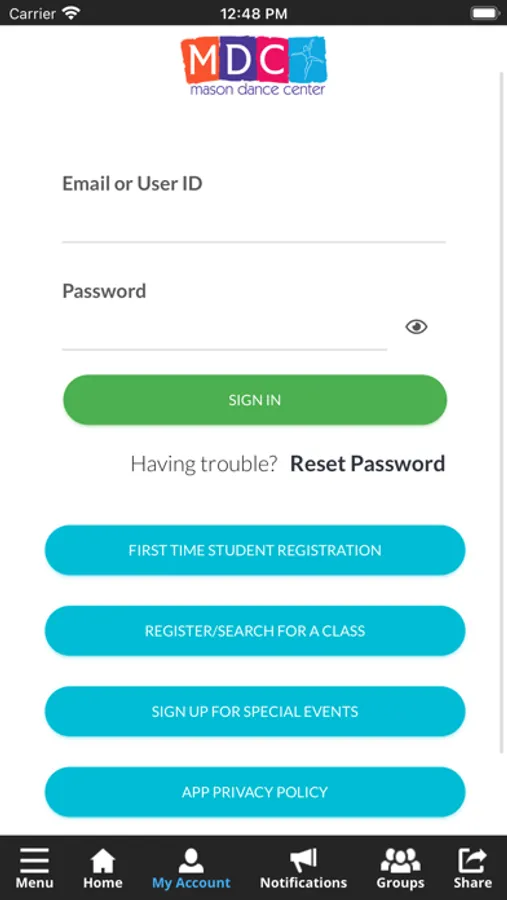 The MDC app allows you to register for classes, parties and special events at our Mason Ohio location. The MDC calendar, social media links, and contact information are also easily accessible from the app.